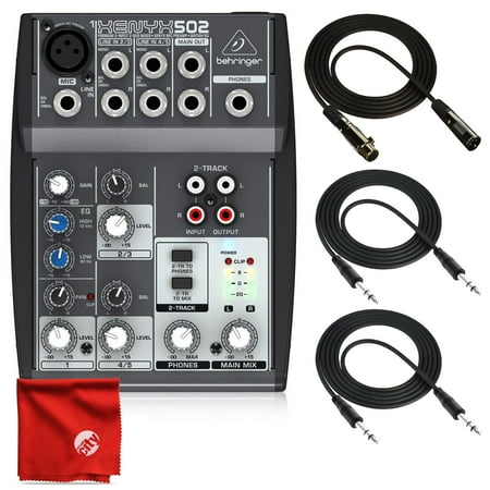 Behringer Xenyx 502 Premium 5 Input 2 Bus Mixer Bundle With Deluxe 10 Xlr And 2x 10 Trs And Cables