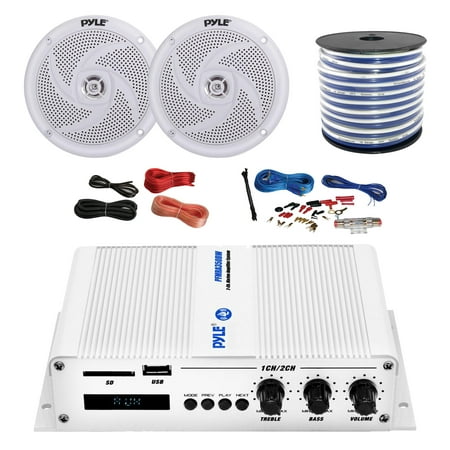Pyle Marine Pfmra350bw 2 Channel Bluetooth White Amplifier Pyle 4 2 Way Waterproof Weather Resistant White Speakers Pair Amp Install Kit 18 G 50