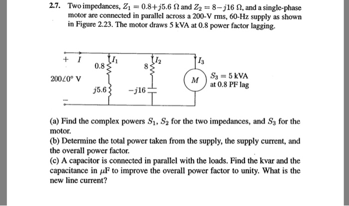 Solved 2 7 Two Impedances Zi Motor Are Connected In Par
