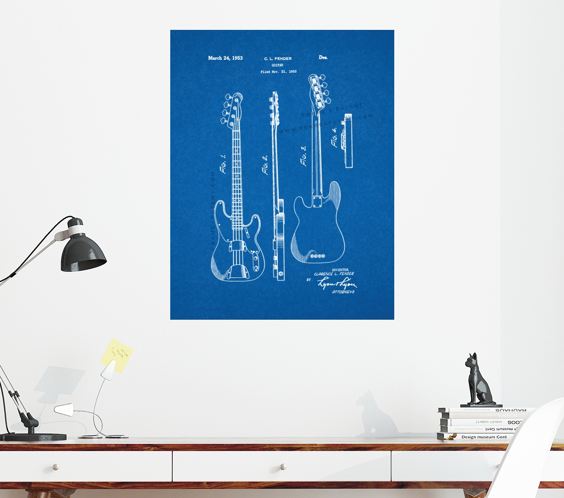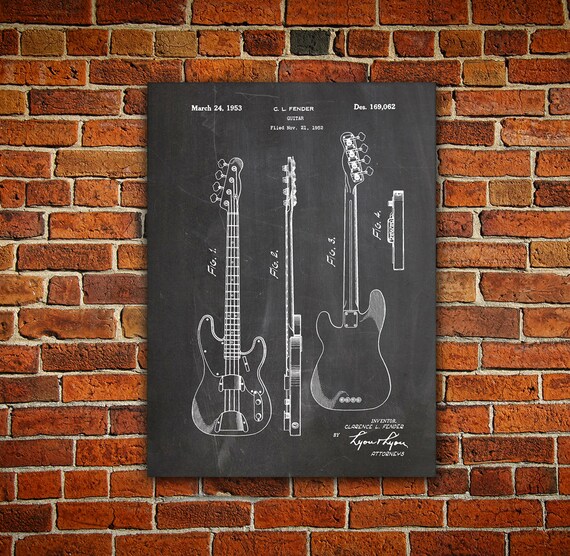 Fender Precision Bass Guitar Patent Poster Fender Guitar Bass Guitar Patent Bass Blueprint Bass Guitar Poster