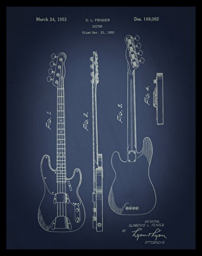 Framed Fender Precision Bass Patent Diagram Blueprint 16x12