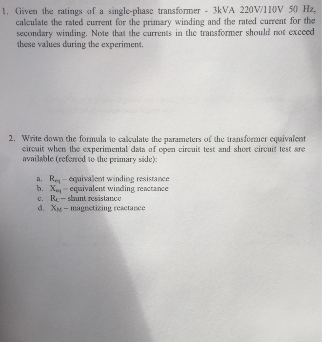 Solved 1 Given The Ratings Of A Single Phase Transformer