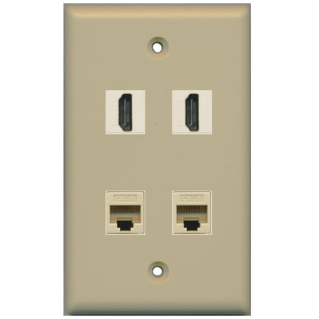 Riteav 2 Port Hdmi 2 Port Cat6 Ethernet Wall Plate Ivory