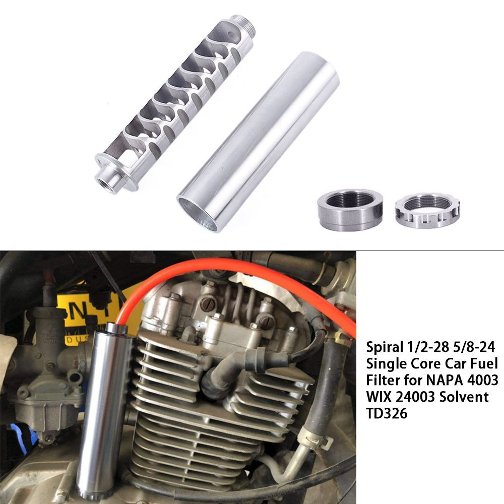 Spiral 12 28 or58 24 single core 7075 aluminum car fuel filter for napa 4003 wix 24003 car used fuel filter. Car fuel filter spiral 12 28 or 58 24 single core titanium car fuel filter with tube for napa 4003 wix 24003 only for car use.